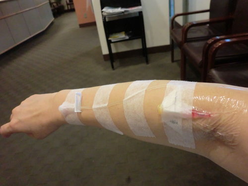 *今天奇蹟式的,針頭….竟然可以打進這個位置的血管